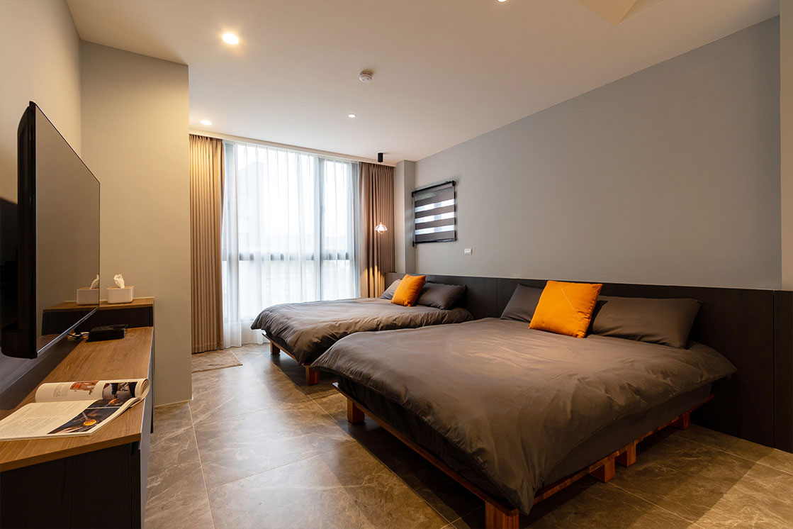 尋見777民宿:客房提供四人景觀套房,部份房型備有浴缸,每間皆設有對外落地窗,一眼望去便是壯闊的山景與遼闊田野,清晨鳥鳴喚醒美好,夜晚星空伴您入眠。
